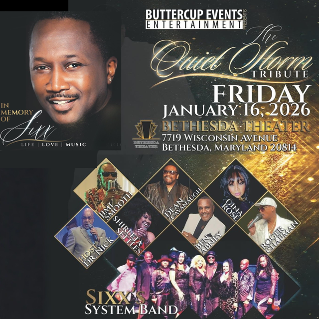 A Quiet Storm Tribute is presented in memory of Rod “Sixx” Sermon featuring his band The System performing classic Quiet Storm songs with a phenomenal all-star lineup of talented singers including Jimi Smooth, Shirleta Settles, Dean Cavanaugh, Ben Abney, Gina Rose and Roger Chapman, hosted by Nick Johnson.