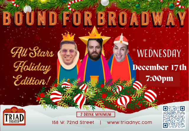 Bound For Broadway is presented by the Triad Theater, Bennett Theatricals LLC, and Fursh Media.