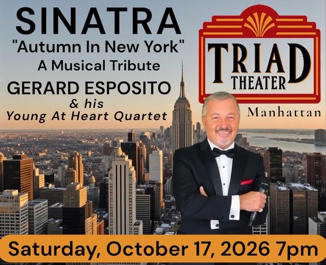 Sinatra loved New York, especially in the Autumn season..... SINATRA "Autumn In New York" is a heartwarming song review of Sinatra classics as performed by Atlantic City Headliner GERARD ESPOSITO & his YOUNG AT HEART QUARTET.