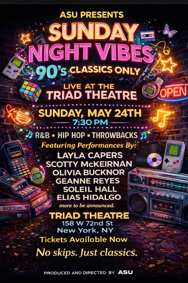 Dust off your oversized flannels, grab your butterfly clips, and get ready for a nostalgic journey through the golden era of music. ASU invites you to an electrifying night at the Triad Theatre for Sunday Night Vibes, a high-energy cabaret celebration dedicated exclusively to the R&B and Hip-Hop hits that defined the 1990s.