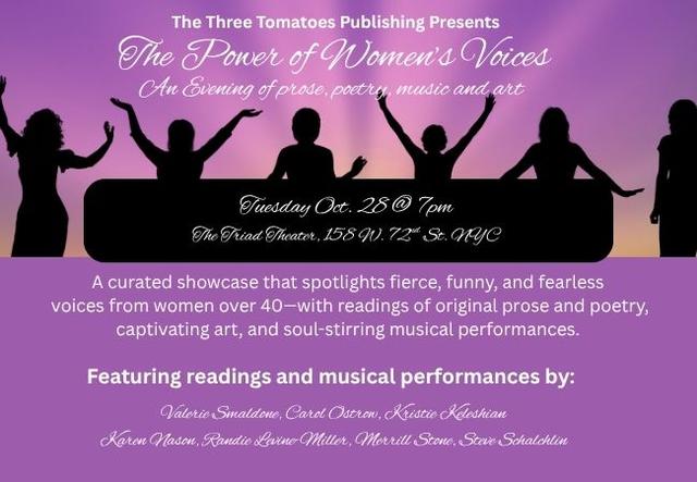 Live readings by actresses and producers Valerie Smaldone, Carol Ostrow, and CBS reporter and actress Kristie Keleshian of some of our published authors whose work uplifts and empowers.