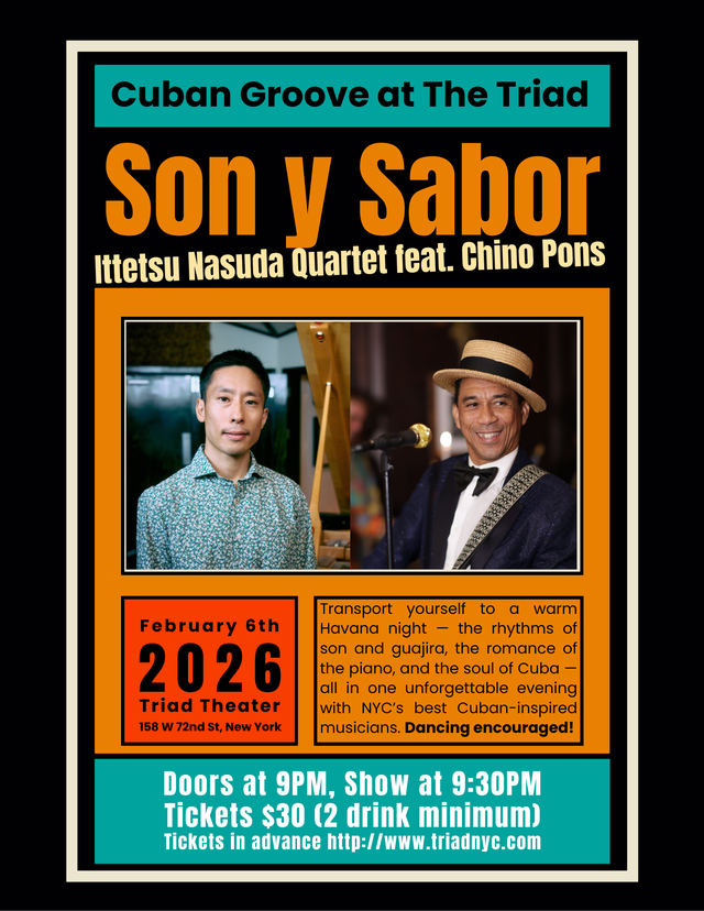 “Transport yourself to a warm Havana night — the rhythms of son and guajira, the romance of the piano, and the soul of Cuba — all in one unforgettable night with New York’s best Cuban-inspired musicians.”