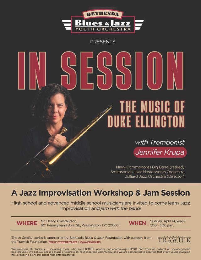 Join us for our FREE jazz workshop, βIN SESSION: The Music of Duke Ellington,β featuring trombonist Jennifer Krupa.