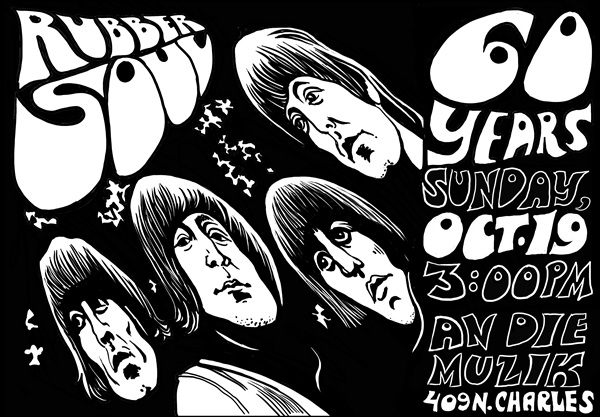 To celebrate the 60th anniversary of the Beatles Rubber Soul album Robert Friedman, Kurt Hammond, Ava Oelke, Kaitlyn Lee, Sam Nitzberg, Kirk Kness, Pete Naron, Tom Chalkley, Mike Barth, Hoppy Hopkins, Zee Smith, Dan Naiman, Michael Spittel, Paul Margolis, and John Shock will interpret music written and recorded in a month during the fall of 1965 comprising the UK album, an associated single, and one song from the American version of the album. Songs will be performed in acoustic arrangements, in small ensembles, and with a full band.